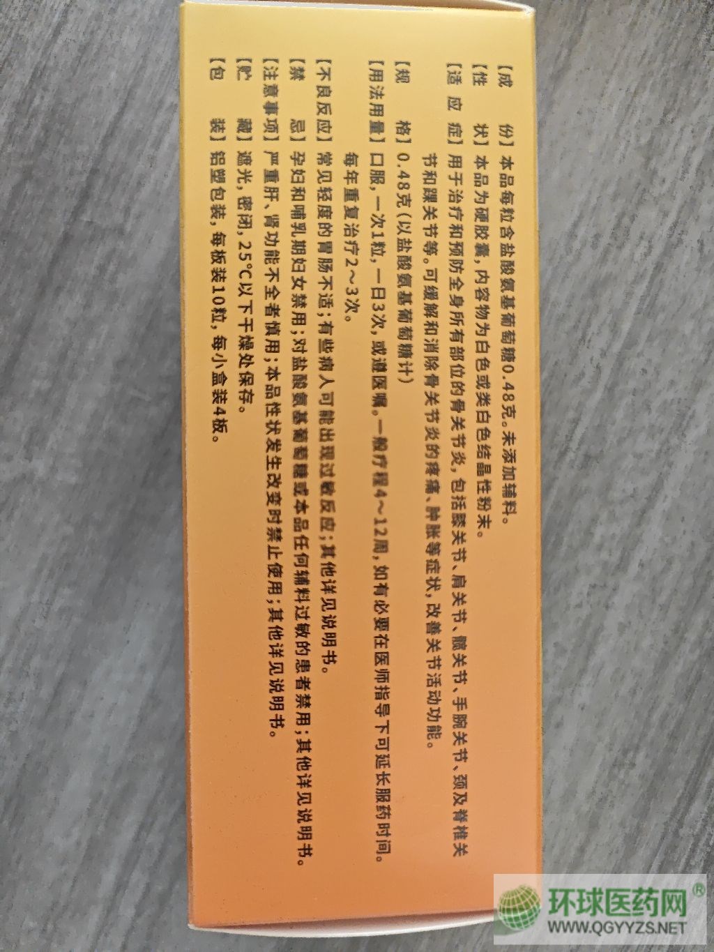 | 通用名稱 | 鹽酸氨基葡萄糖膠囊 |