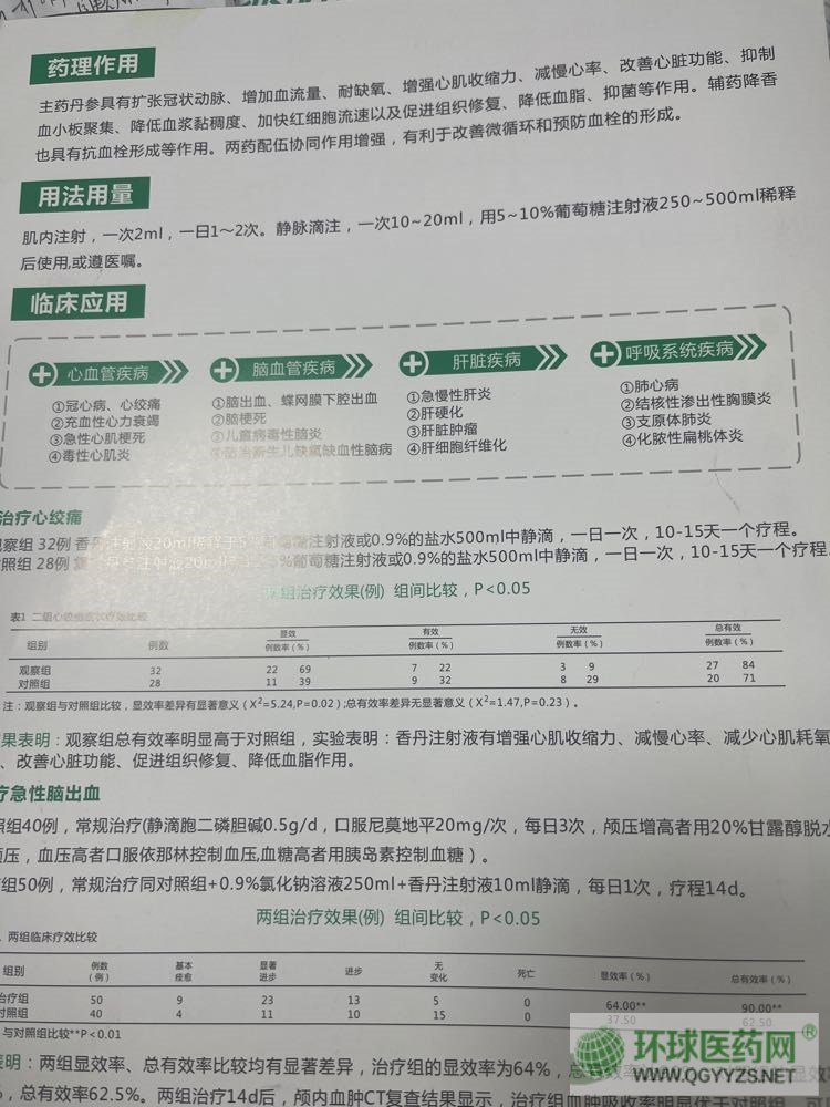 通用名稱: 香丹注射液