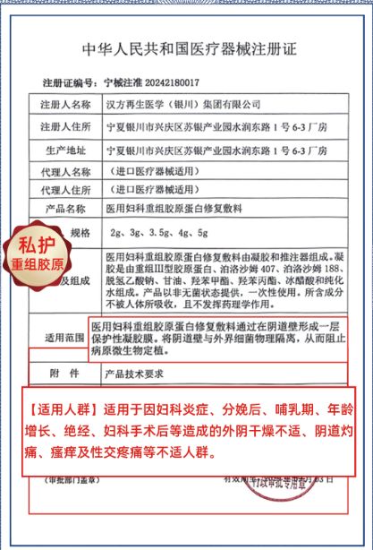 | 產品用途 | 適用于因婦科炎癥、分娩后、哺乳期、年齡增長、絕經、婦科手術后等造成的外陰干燥不適、陰道灼痛、瘙癢及性交疼痛等不適人群輔助治療 |