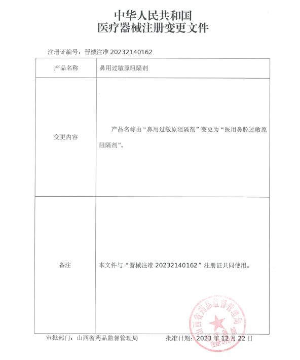 | 產(chǎn)品名稱 | 醫(yī)用鼻腔過敏原阻隔劑 |