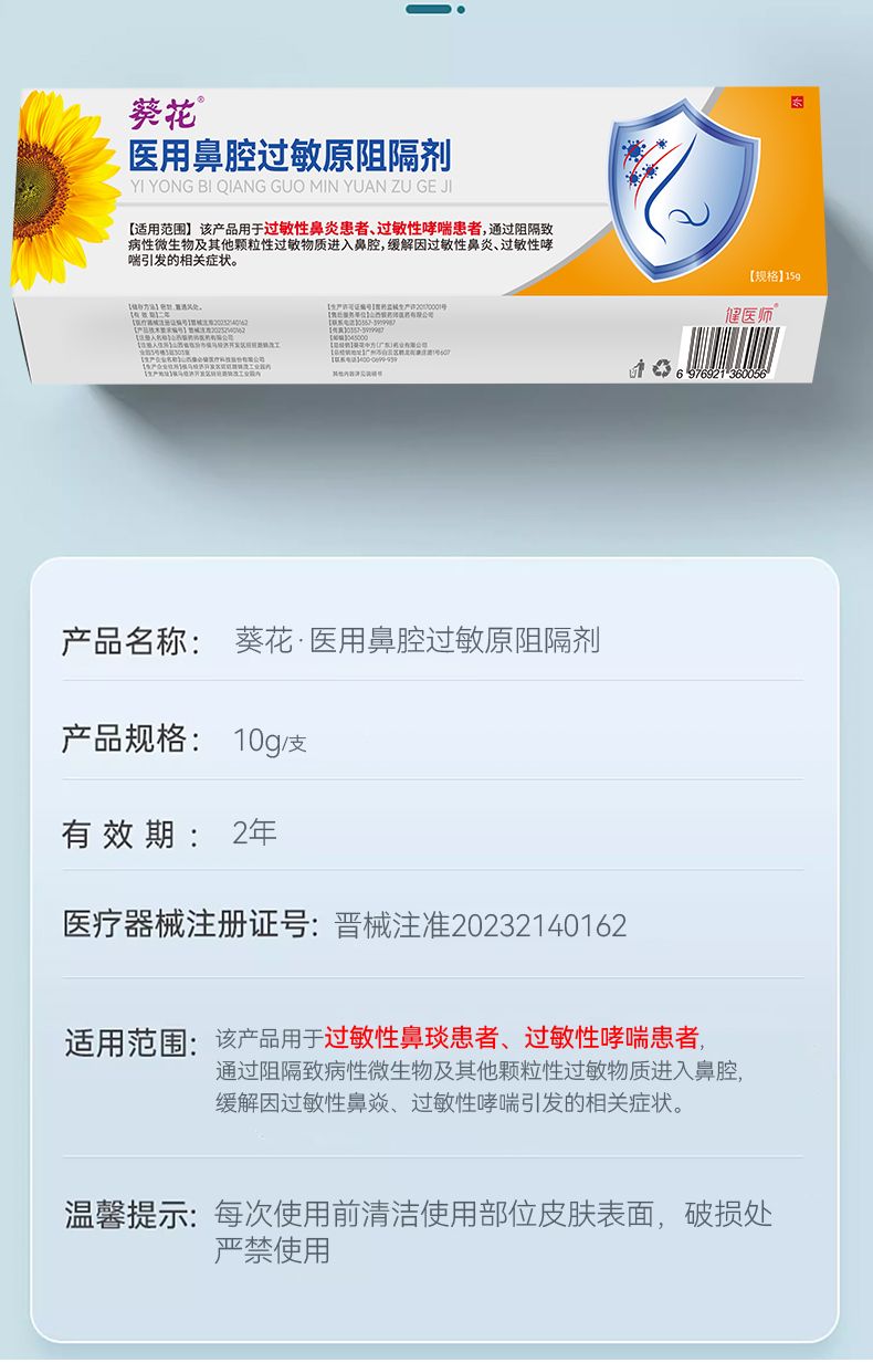 產(chǎn)品名稱: 醫(yī)用鼻腔過敏原阻隔劑