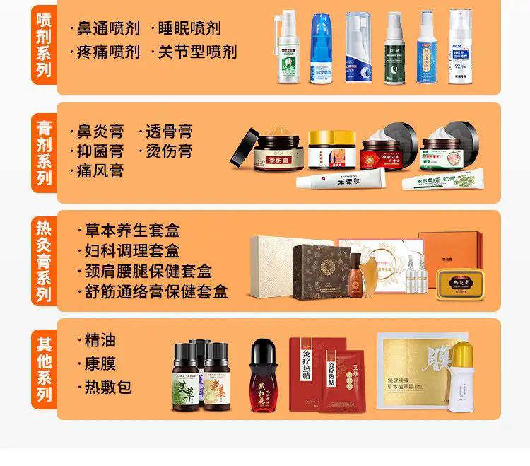 - 海旭醫(yī)療主要承接各類暖宮貼定制、遠(yuǎn)紅外理療貼代加工、磁療貼貼牌加工、穴位敷貼廠家、灸熱貼代加工、退熱貼代加工、燙熨治療包定制、小兒咳 喘腹瀉膏藥定制加工、艾灸貼定制、化妝品定制、保健食品定制、噴劑、乳膏類加 工等醫(yī)院臨床和終端診所所需的系列產(chǎn)品。公司的經(jīng)營范圍有:骨科,婦科、男科、手術(shù)科、五官科和小兒科等。
