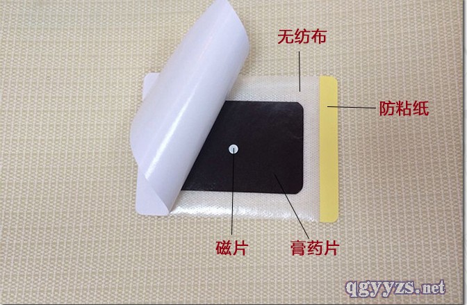 主要成分 該產(chǎn)品由醫(yī)用橡皮膏和貼芯兩部分組成,貼芯是由無紡布、遠(yuǎn)紅外陶瓷粉、磁體和松木粉混合物等組成。