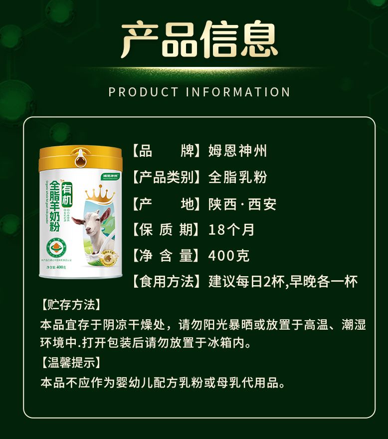 | 產品名稱 | 姆恩神州·有機全脂羊奶粉 |