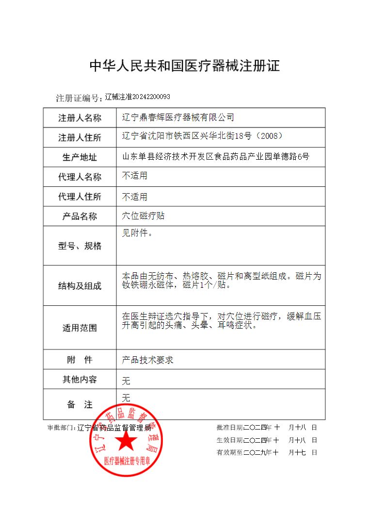 批準(zhǔn)文號(hào): 遼械注準(zhǔn)20242200093 【驗(yàn)證真?zhèn)?/a>】