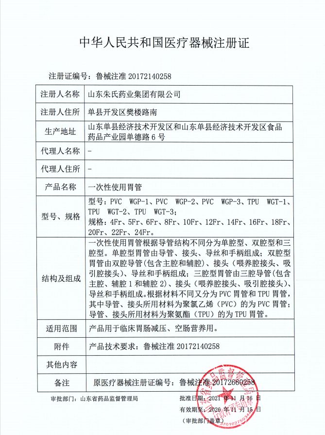 | 產(chǎn)品名稱 | 一次性使用胃管 |