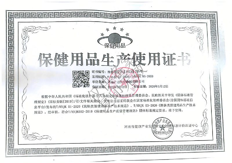 批準(zhǔn)文號: 豫健用證字2023165 【驗證真?zhèn)?/a>】