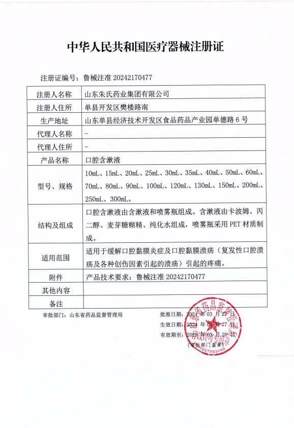 批準(zhǔn)文號: 魯械注準(zhǔn)20242170477 【驗證真?zhèn)?/a>】