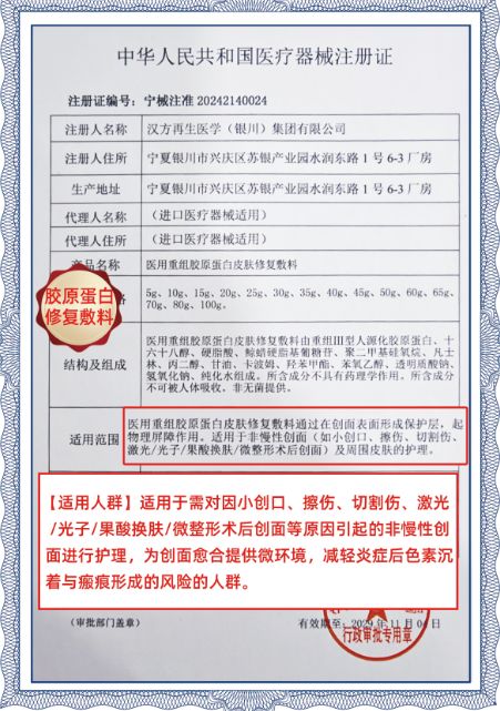 | 補(bǔ)充說明 | 1:通過在創(chuàng)面表面形成保護(hù)層,起物理屏障作用。適用于非慢性創(chuàng)面(如小創(chuàng)口、擦傷、切割傷、激光/光子/果酸換膚/微整形術(shù)后創(chuàng)面)及周圍皮膚的護(hù)理 2:適用于需對因小創(chuàng)口、擦傷、切割傷、激光/光子/果酸換膚/微整形術(shù)后創(chuàng)面等原因引起的非慢性創(chuàng)面進(jìn)行護(hù)理,為創(chuàng)面愈合提供微環(huán)境,減輕炎癥后色素沉著與瘢痕形成的風(fēng)險(xiǎn)的人群。 3:本產(chǎn)品由重組Ⅲ型人源化膠原蛋白、十六十八醇、硬脂酸、鯨蠟硬脂基葡糖苷、聚二甲基硅氧烷、凡士林、丙二醇、甘油、卡波姆、羥苯甲酯、苯氧乙醇、透明質(zhì)酸鈉、氫氧化鈉、純化水組成。所含成分不具有藥理學(xué)作用。所含成分不可被人體吸收。非無菌提供。 |