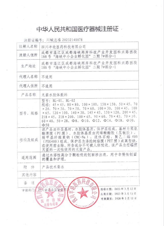 | 注冊商標 | 無菌水膠體敷料 |
