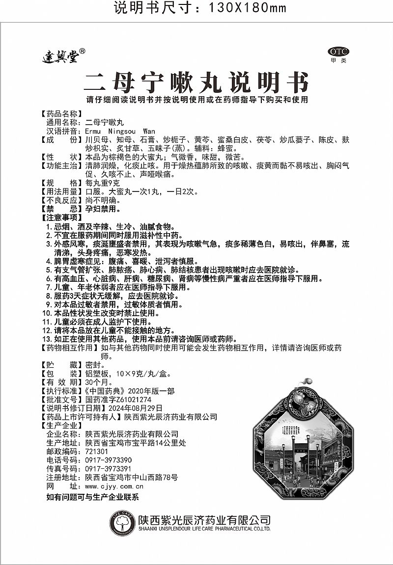 二母寧嗽丸(化痰止咳、醫(yī)保甲類、操作空間大,基藥)基本藥物國家醫(yī)保