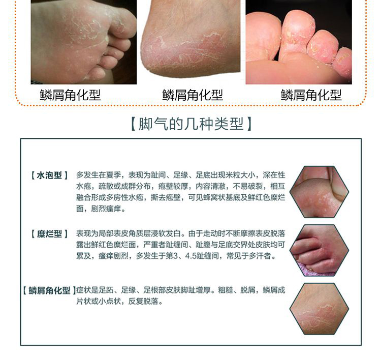 | 產(chǎn)品用途 | 適用于腳臭、脫皮、腳癢、水皰、爛腳丫等人群抑菌護理 |