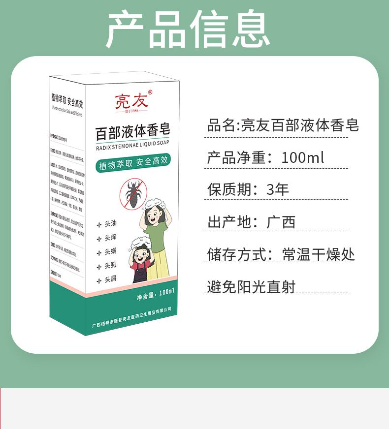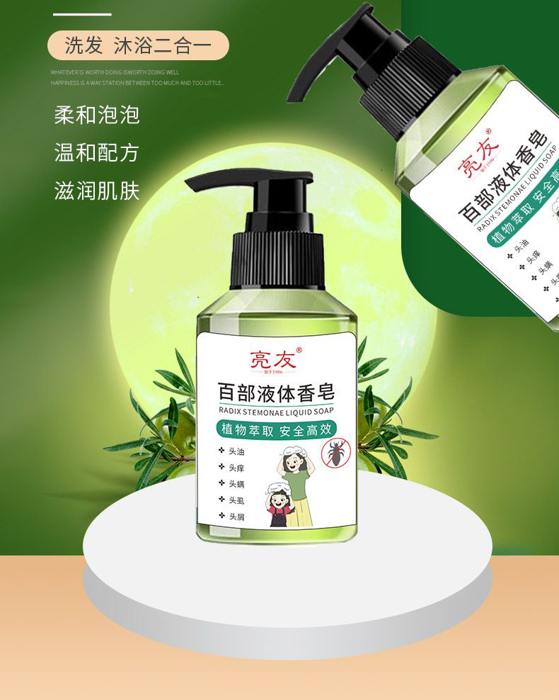 亮友百部液體香皂去虱洗發(fā)水頭虱虱立凈虱卵沐浴露