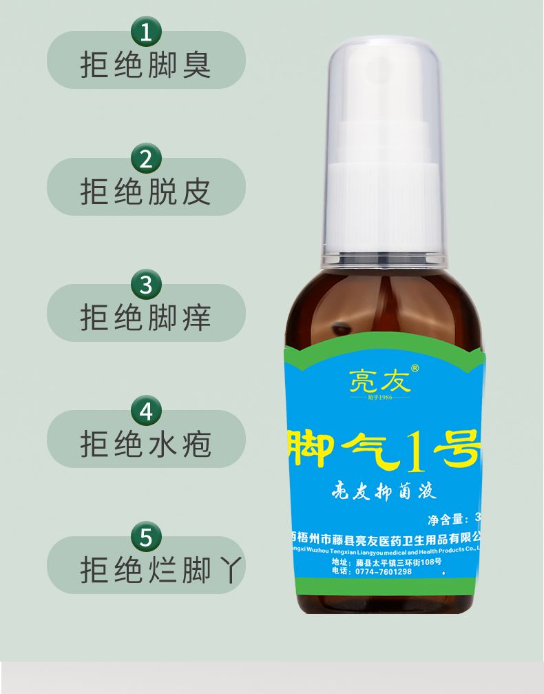 亮友抗菌噴劑抑菌止癢脫皮腳丫除腳臭腳癢水泡出汗型
