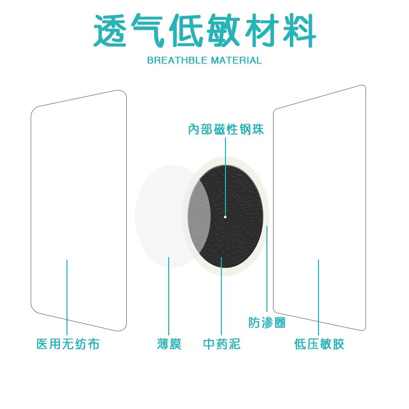 | 主要成分 | 由不銹鋼珠和醫(yī)用膠布組成。貼于人體穴位處,通過(guò)外力僅起壓力刺激作用。 |