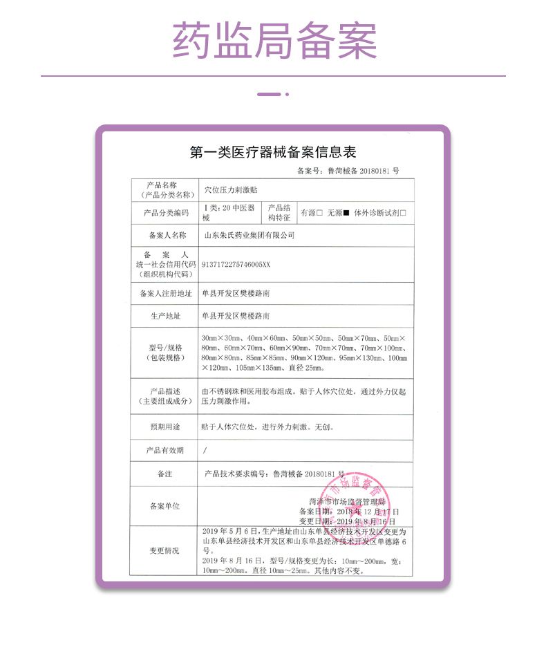 | 主要成分 | 由不銹鋼珠和醫(yī)用膠布組成。貼于人體穴位處,通過(guò)外力僅起壓力刺激作用 |