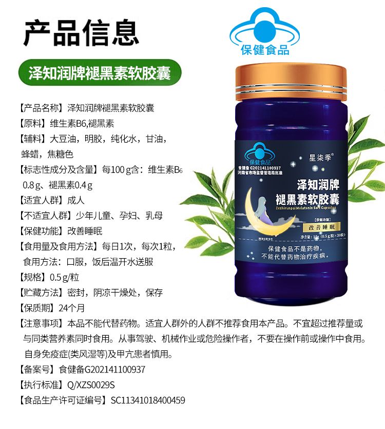 | 產(chǎn)品名稱 | 褪黑素軟膠囊 |