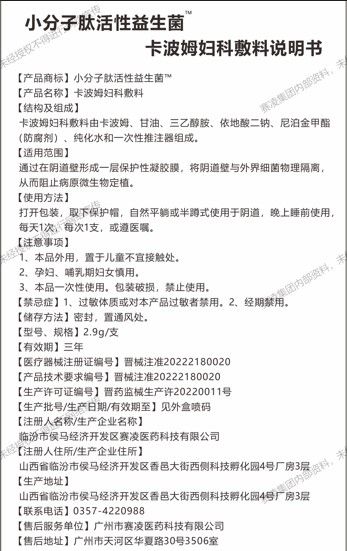 | 產(chǎn)品名稱 | 小分子肽活性益生菌™卡波姆婦科敷料 |