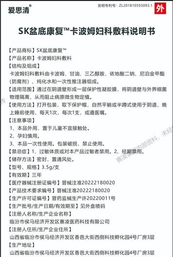 | 產(chǎn)品名稱 | sk盆底康復(fù)™卡波姆婦科敷料 |