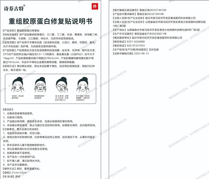 | 產(chǎn)品名稱 | 詩芬古特重組膠原蛋白修復貼 |