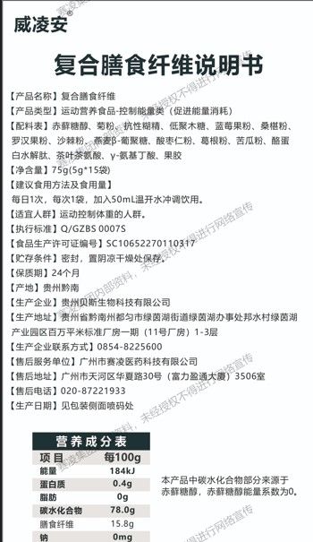 | 產(chǎn)品名稱 | 威凌安復(fù)合膳食纖維 |