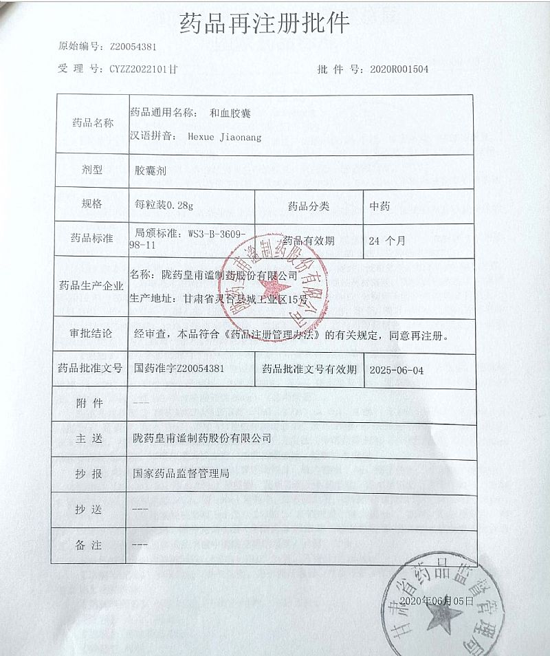 | 藥品上市許可持有人 | 隴藥皇甫謐制藥(甘肅)有限公司 |