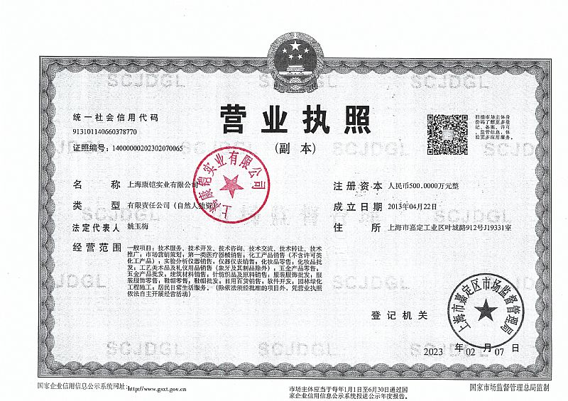 生產(chǎn)企業(yè): 上海康鎧實業(yè)有限公司