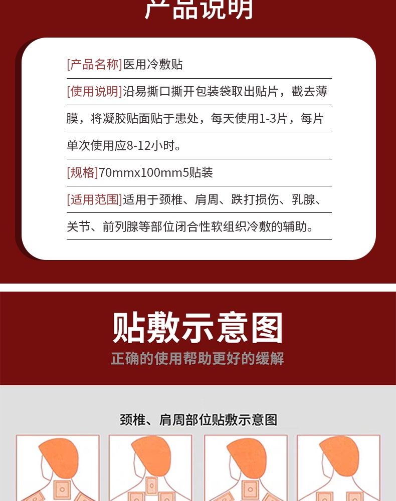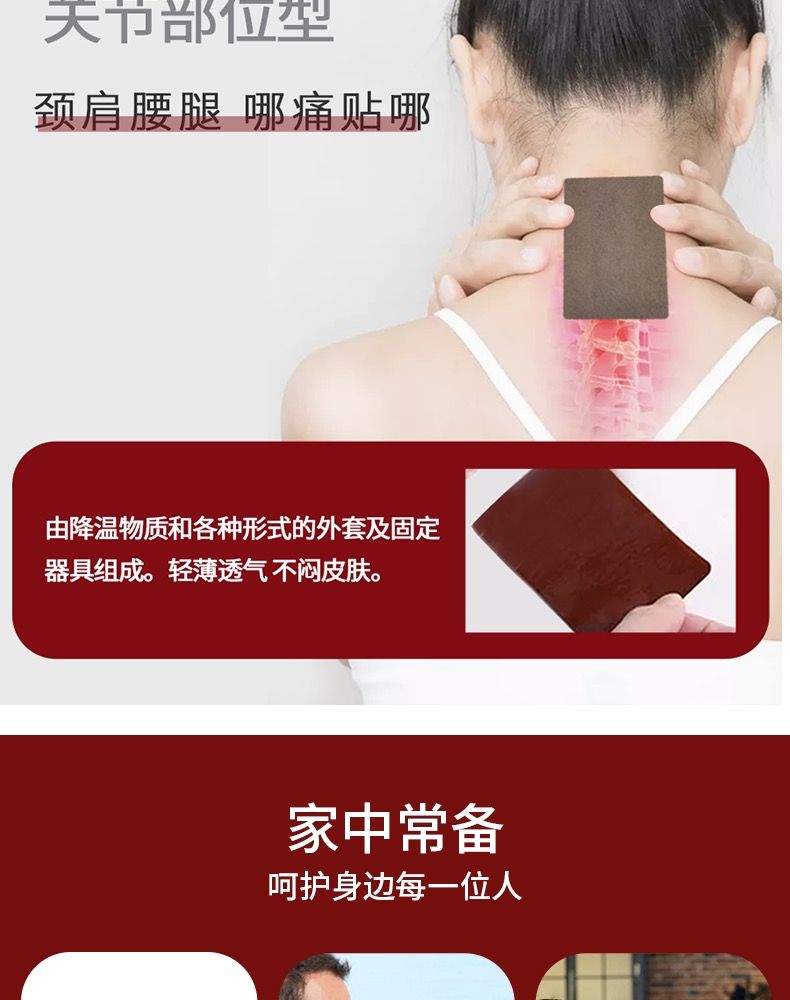 | 使用方法 | 清潔患處,確認(rèn)包裝無(wú)破損后,打開(kāi)包裝,取出遠(yuǎn)紅外理療貼,將貼劑的隔離膜撕去,貼于患處 |