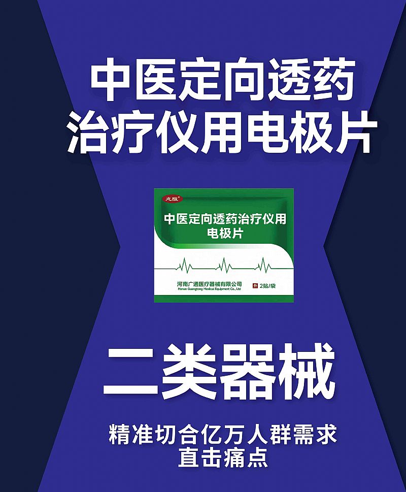 | 產(chǎn)品用途 | 使用時,貼附在理療部位。配合中醫(yī)定向透藥治療儀等儀器使用,將儀器輸出的電刺激信號傳導到人體皮膚表面。 |