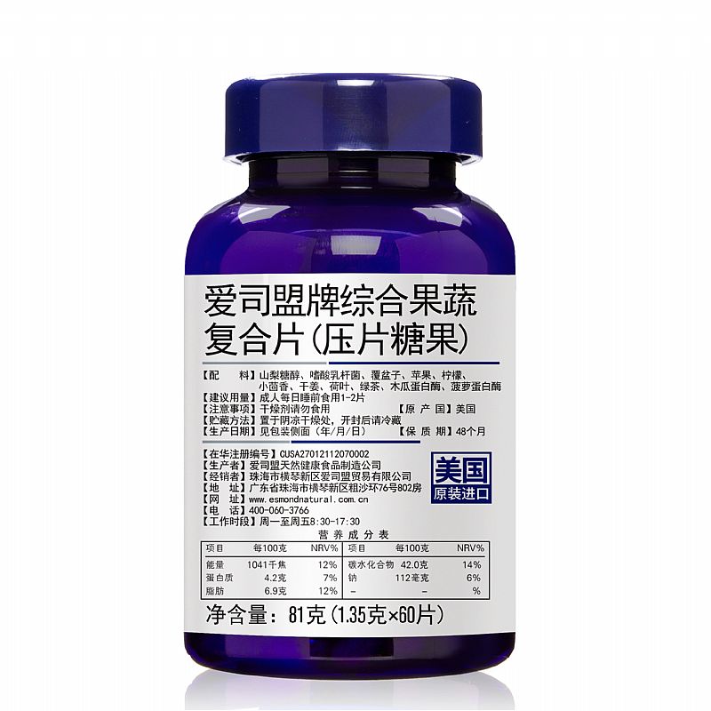 產(chǎn)品名稱: 愛司盟牌綜合果蔬復(fù)合片(壓片糖果)