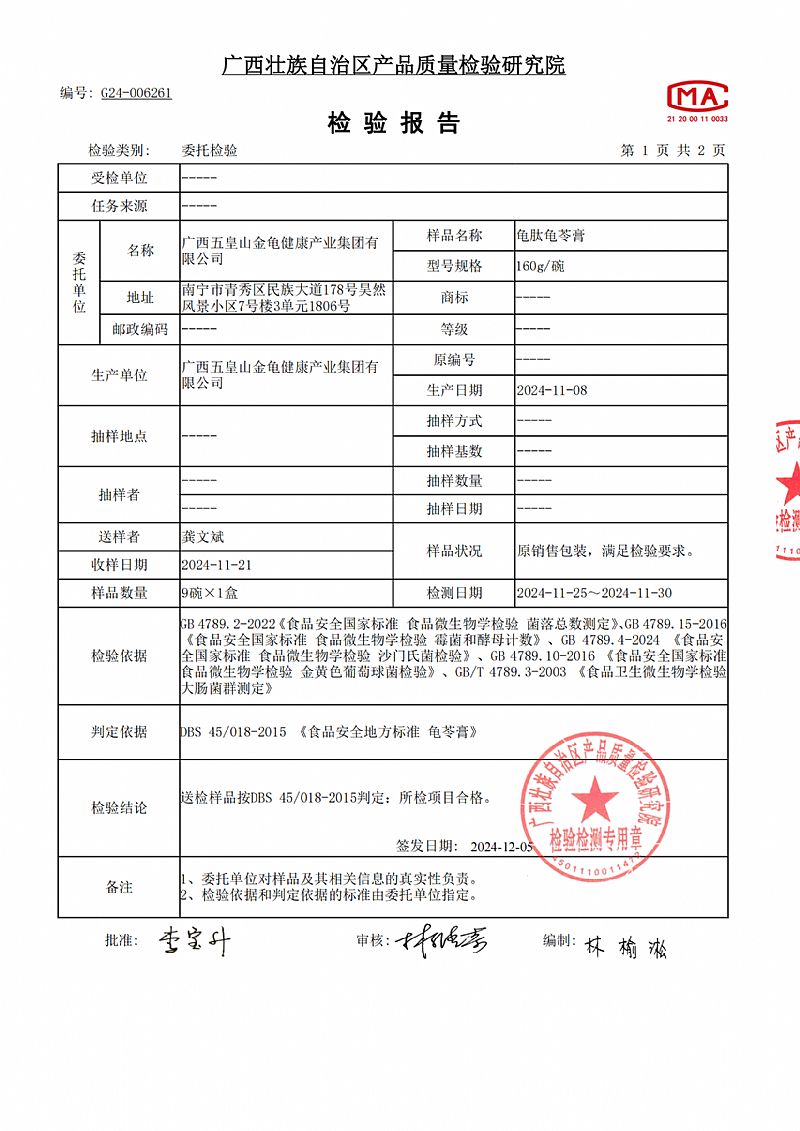 生產企業(yè): 廣西五皇山金龜健康產業(yè)集團有限公司