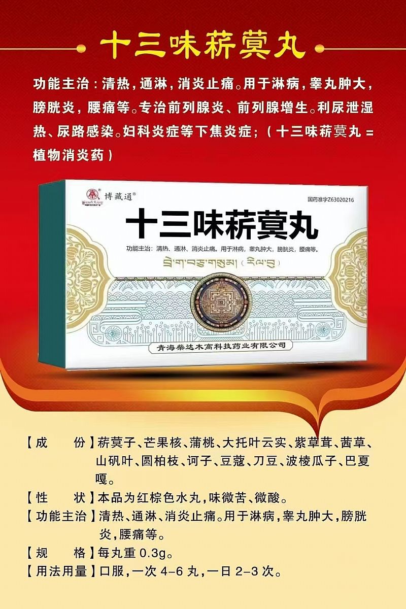 | 主要成分 | 菥冀子、芒果核、蒲桃、大托葉云實、紫草茸、茜草、山礬葉圓柏枝、訶子、豆蔻、刀豆、波棱瓜子、巴夏嘎。 |