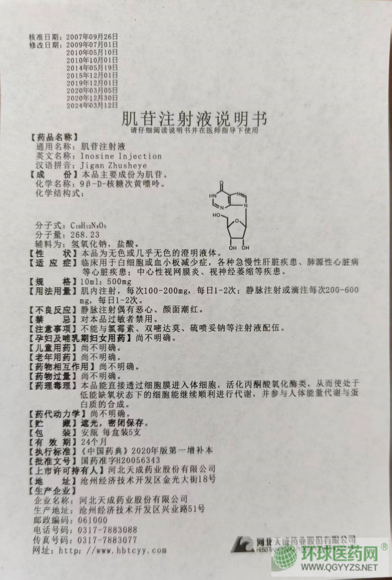| 通用名稱(chēng) | 肌苷注射液 |
