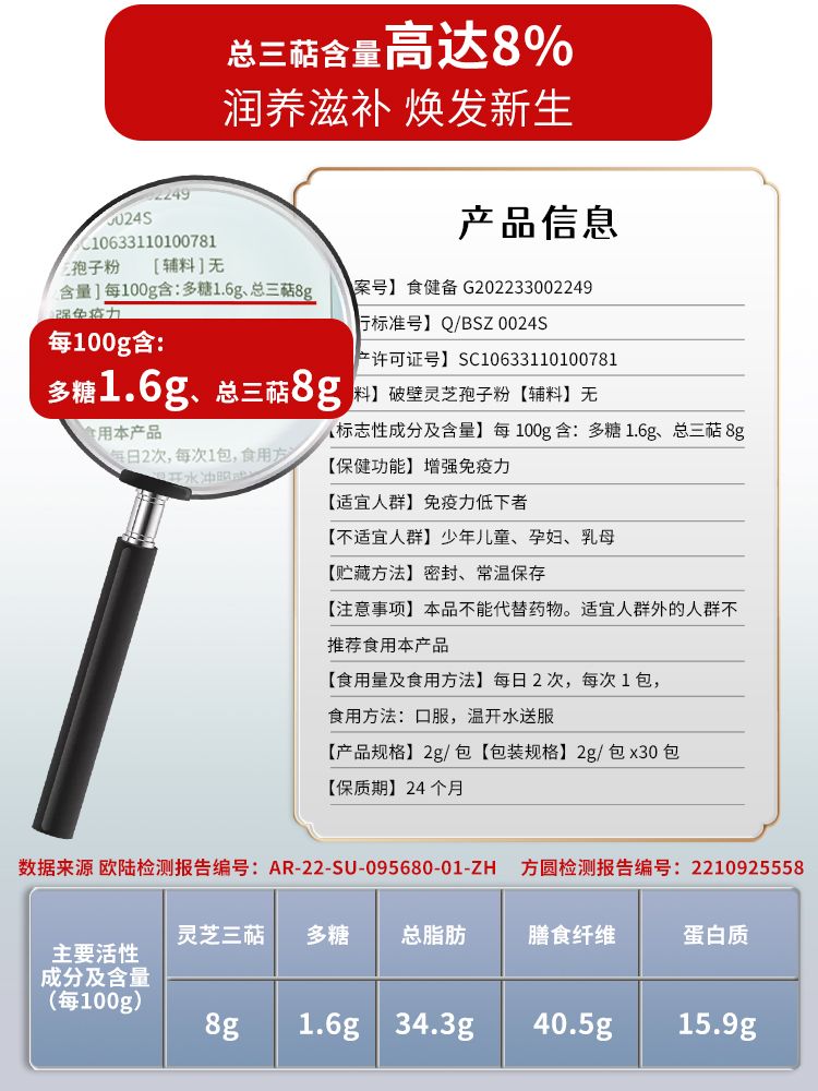 | 主要成分 | 百分百純有機破壁靈芝孢子粉 |