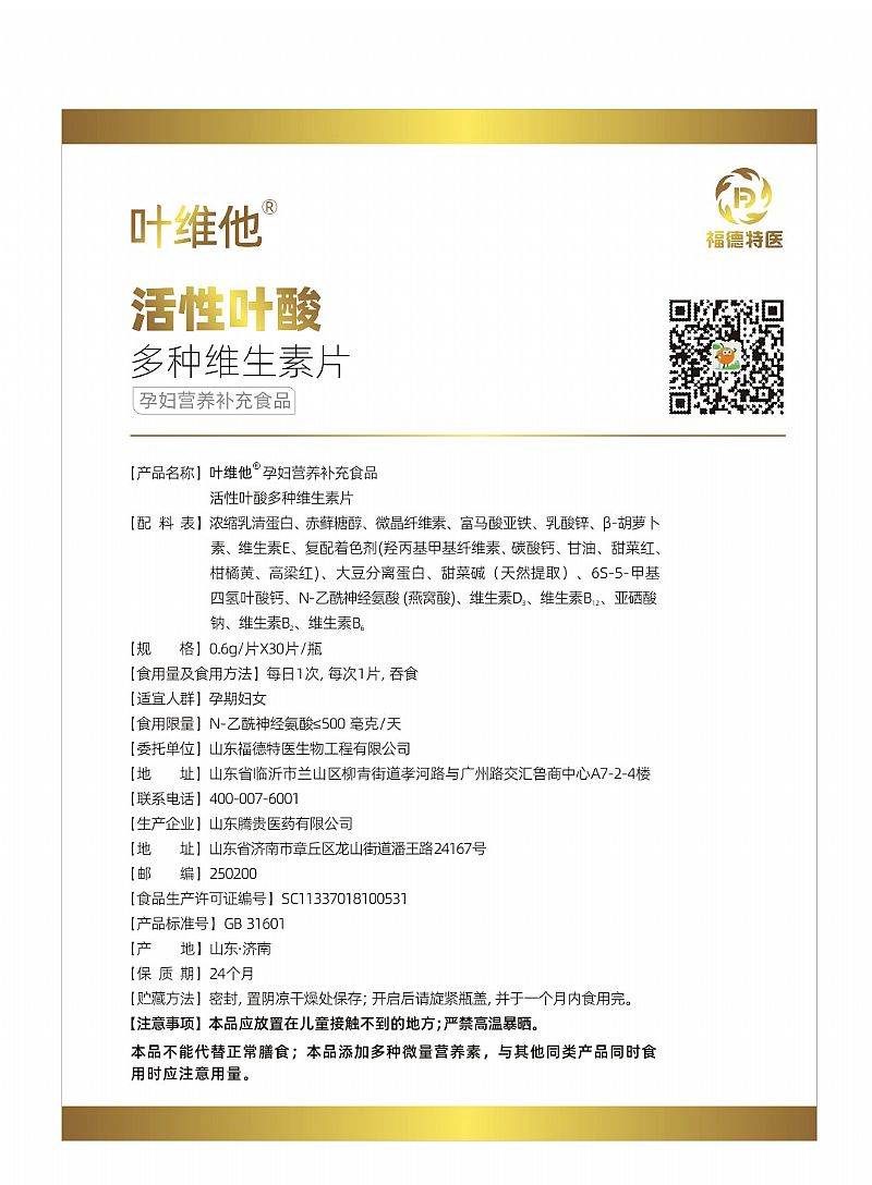 活性葉酸多種維生素片