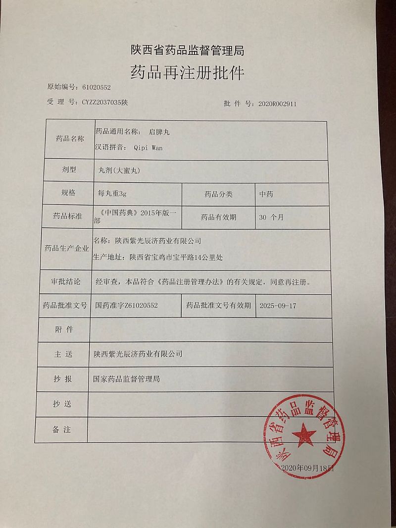 生產(chǎn)企業(yè): 陜西紫光辰濟(jì)藥業(yè)有限公司