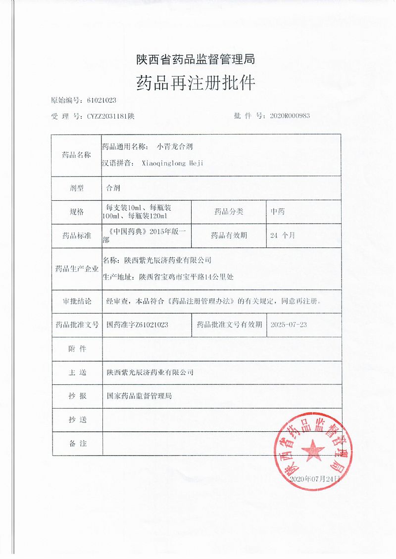 生產(chǎn)企業(yè): 陜西紫光辰濟藥業(yè)有限公司