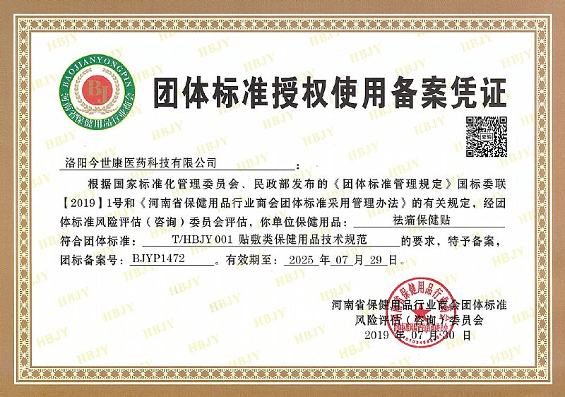 批準(zhǔn)文號(hào): 豫健團(tuán)標(biāo)證字2019第201號(hào) 【驗(yàn)證真?zhèn)?/a>】