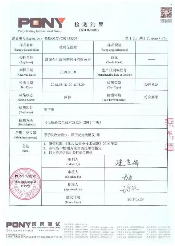 | 產(chǎn)品名稱 | 楊宋氏祛痛保健貼 |