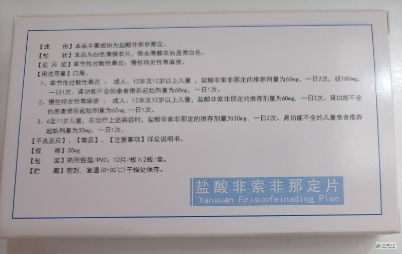 【成份】鹽酸非索非那定。