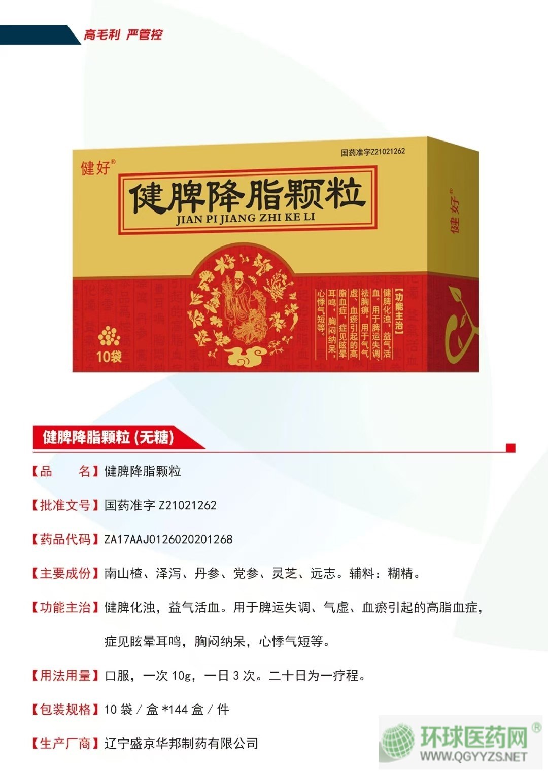 | 功能主治 | 健脾化濁,益氣活血。用于脾運(yùn)失調(diào)、氣虛、血痰引起的高脂血癥,癥見眩暈耳鳴,胸悶納呆,心悸氣短等。 |