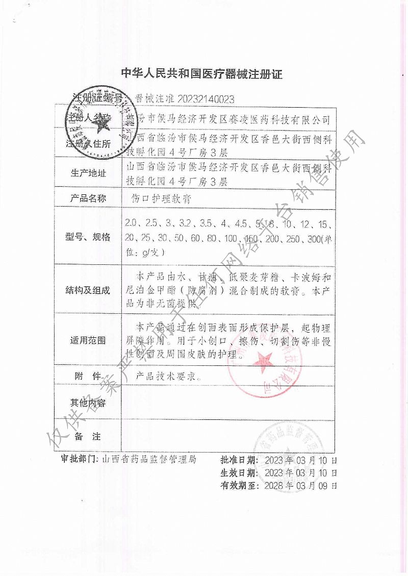 生產(chǎn)企業(yè): 臨汾市侯馬經(jīng)濟開發(fā)區(qū)賽凌醫(yī)藥科技有限公司