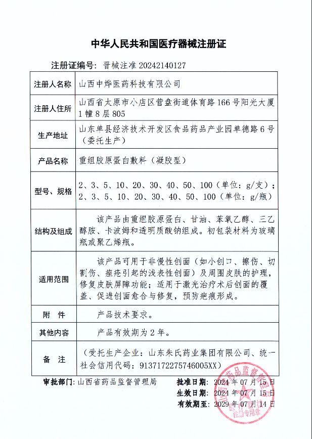 產(chǎn)品名稱: 重組膠原蛋白敷料(凝膠型)