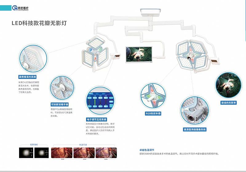 | 補(bǔ)充說(shuō)明 | 1.色溫、亮度調(diào)節(jié); 2.電子調(diào)焦 3.五種手術(shù)自定義功能 4.液晶控制面板一鍵切換:深腔、淺 表、心臟、骨科、泌尿、全科等多 種照明模式 5.進(jìn)口歐司朗燈珠:72額/72顆 6.德國(guó)進(jìn)口歐達(dá)爾平衡臂 7.多功能消毒手柄可調(diào)節(jié)光班、色溫 8.控制面板支持中英文切換 9.標(biāo)配雙燈同步控制系統(tǒng) 10.支持工作時(shí)間記錄,便于數(shù)據(jù)的采集和應(yīng)用 |