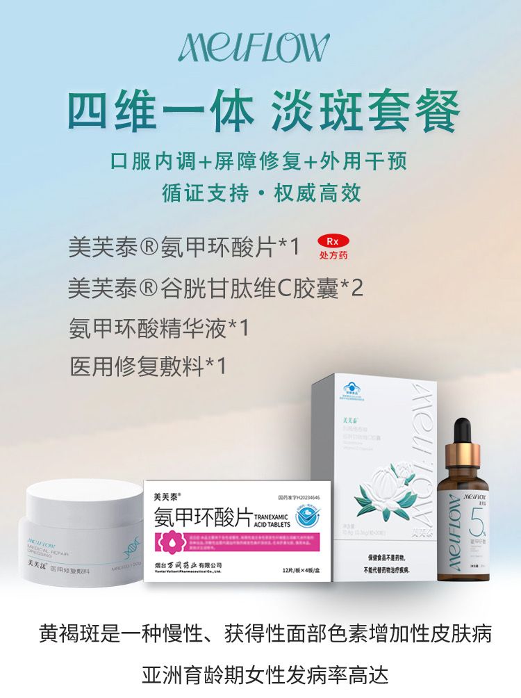 | 產(chǎn)品賣點(diǎn) | #美芙泰#黃金三搭檔#氨甲環(huán)酸精華液#醫(yī)用皮膚修復(fù)敷料#黃褐斑百問(wèn)百答 🧬黃褐斑口服治療黃金三搭檔: 氨甲環(huán)酸片➕谷胱甘肽維C 💦美白淡斑外用精華液: MEIFOLW·氨甲環(huán)酸精華液 ✅械字號(hào)修復(fù)面霜: 美芙汰醫(yī)用修復(fù)敷料 獲得權(quán)威指南推薦獲得權(quán)威指南推薦🔎🎖🎖🎖 追求美麗|關(guān)注美芙泰精彩繼續(xù); |