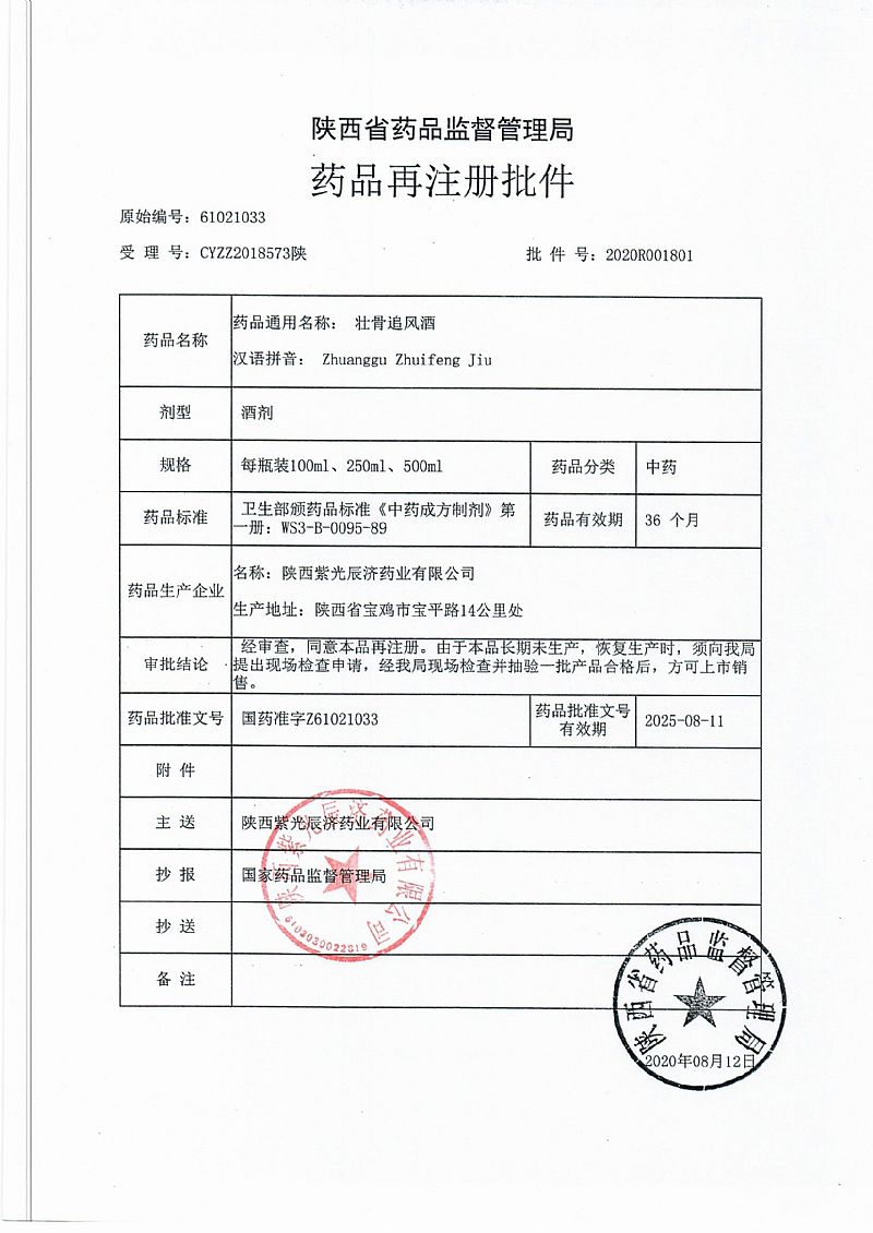 | 通用名稱 | 壯骨追風(fēng)酒 |