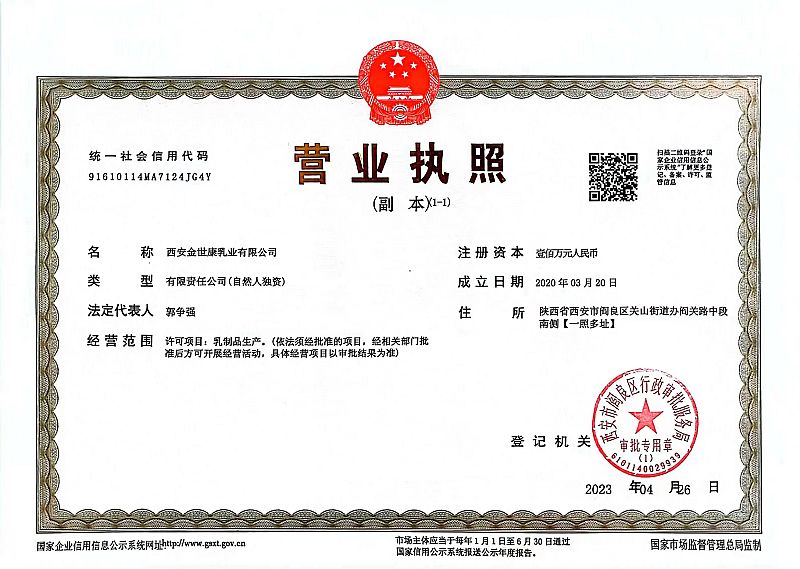 生產(chǎn)企業(yè): 西安金世康乳業(yè)有限公司