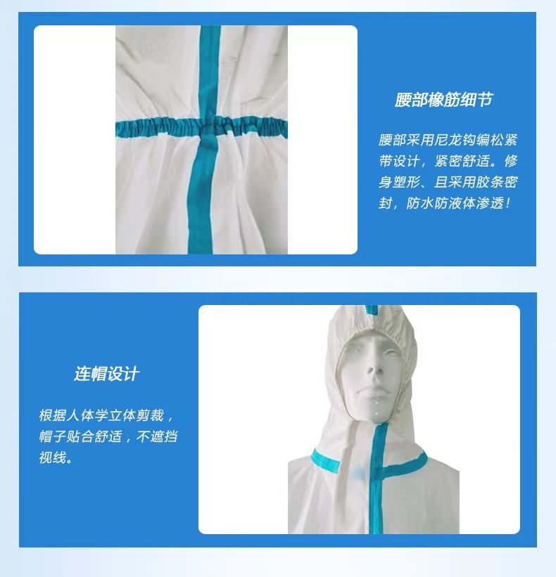| 使用方法 | 穿防護服方法:由下往上穿;向上提拉袖口,整理好袖口位置;將拉鏈向上拉到頂調(diào)整好帽子密封性脫防護服方法:將拉鏈拉開,向上往后提拉帽子,使頭部脫離帽子,脫袖子;從上往下邊脫邊卷;脫下衣,污染面向里脫下后放入醫(yī)療廢物袋 |
