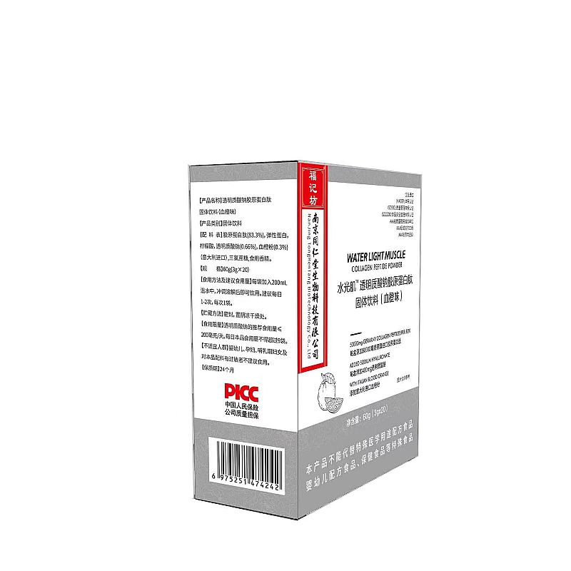 產(chǎn)品名稱: 水光肌™透明質(zhì)酸鈉膠原蛋白肽固體飲料(血橙味)