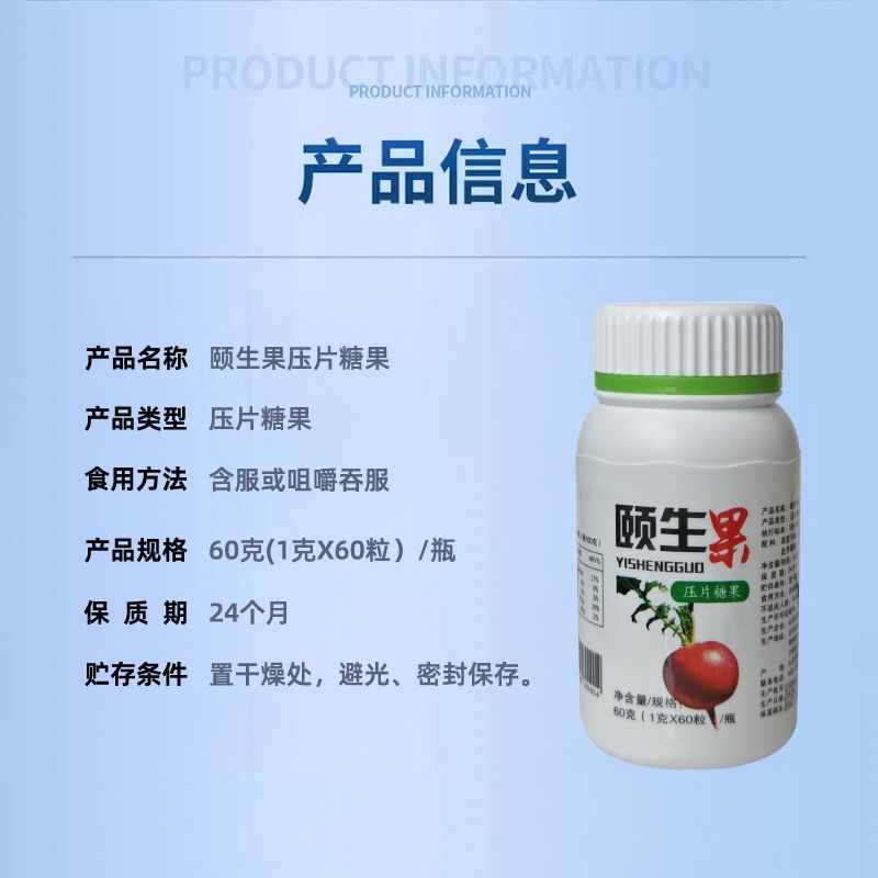 | 產(chǎn)品名稱 | 頤生果壓片糖果 |